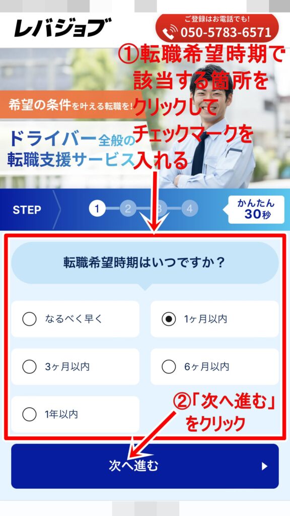 転職希望時期の欄で該当する箇所を