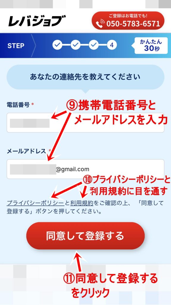 携帯電話番号とメールアドレスを入力したら、
